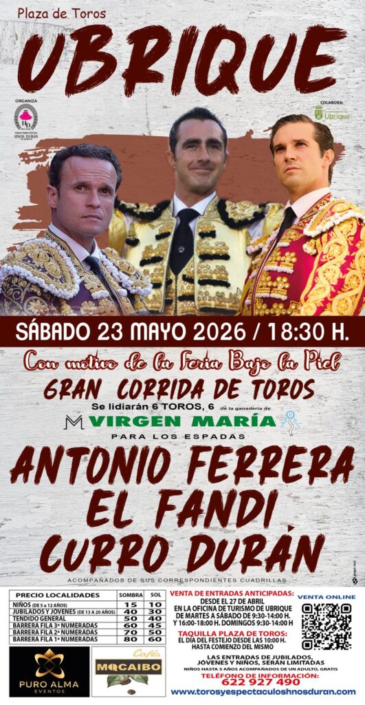 Los toros serán de la ganadería Virgen María, y serán lidiados por Antonio Ferrera, El Fandi y Curro Durán.